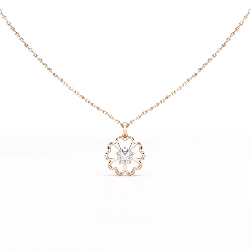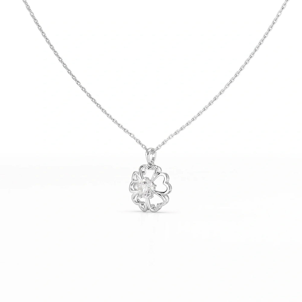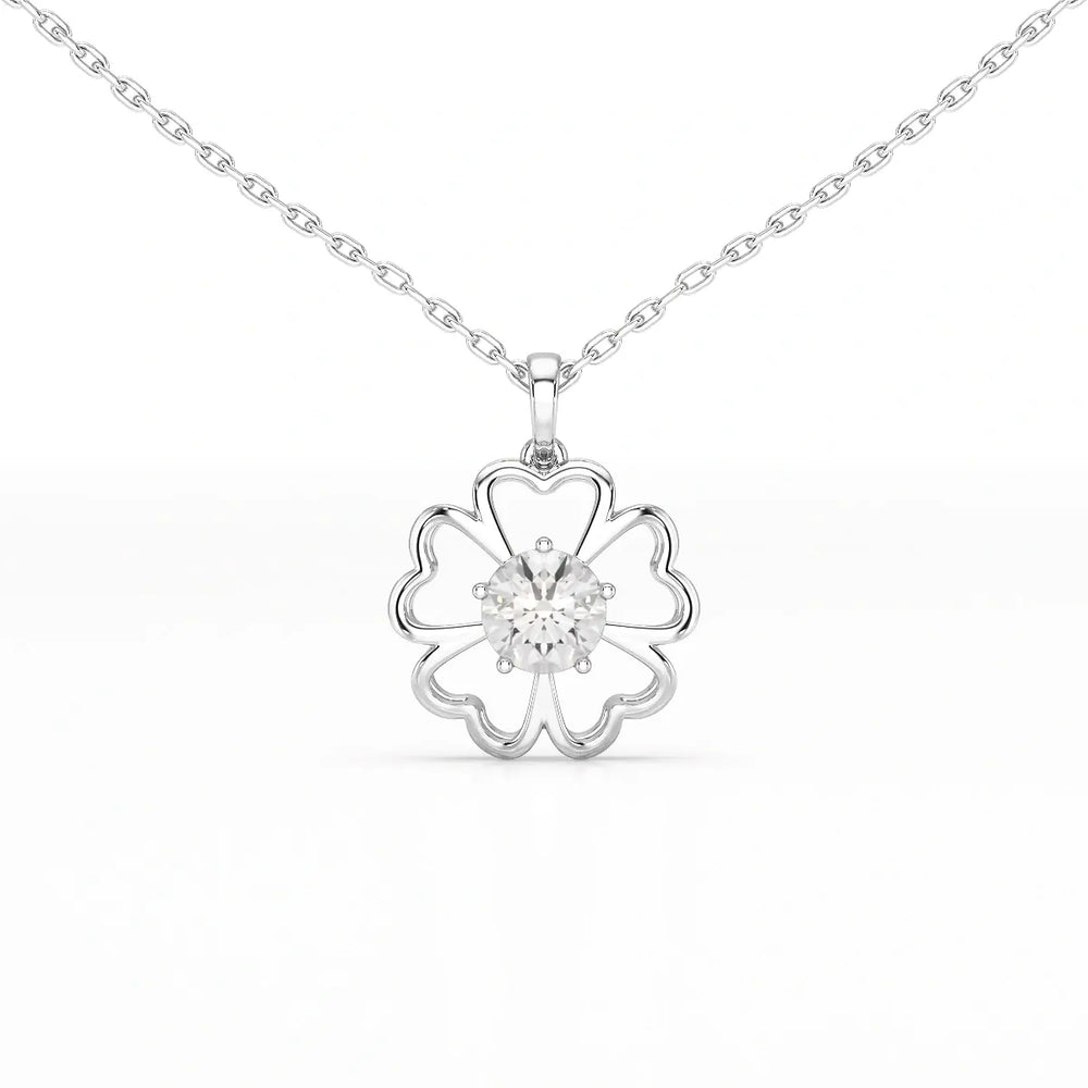 0.65 CT Heart Shape Pave Setting Chain Pendant With Round Cut Lab Diamonds